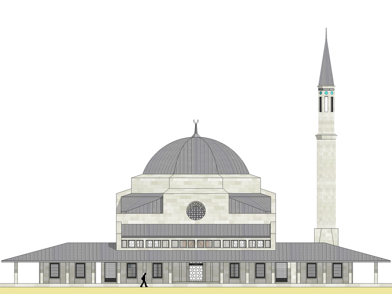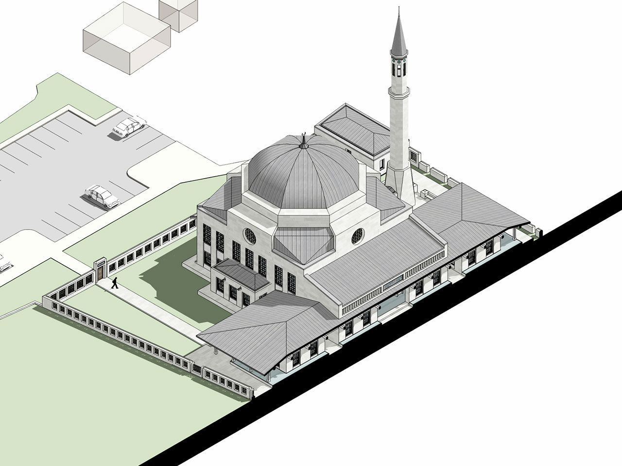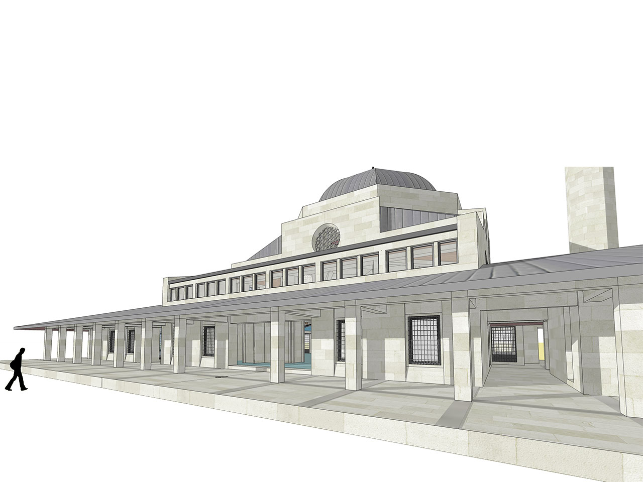 Merkezî planlı ana mekân sekizgen ayaklar üzerinde yükselir, bu ayaklar beden duvarı seviyesinden sonra içeri kıvrılarak sekizgen bir kasnak oluşturur. Bu sekizgen kasnak üzerine dilimli bir kubbe oturur. Ana yapıyı oluşturan bu sekiz kolon iç mekânda hissedilir, ancak mekânı bölmeden duvarların içinde gizlenir. Proje inşaat aşamasındadır.