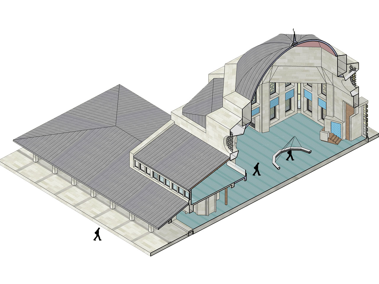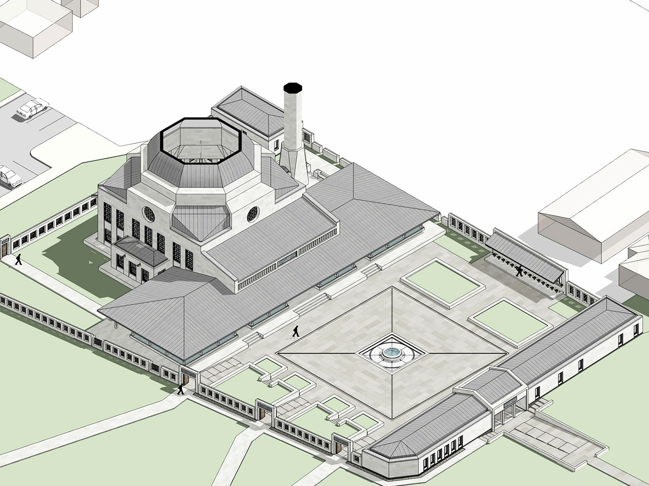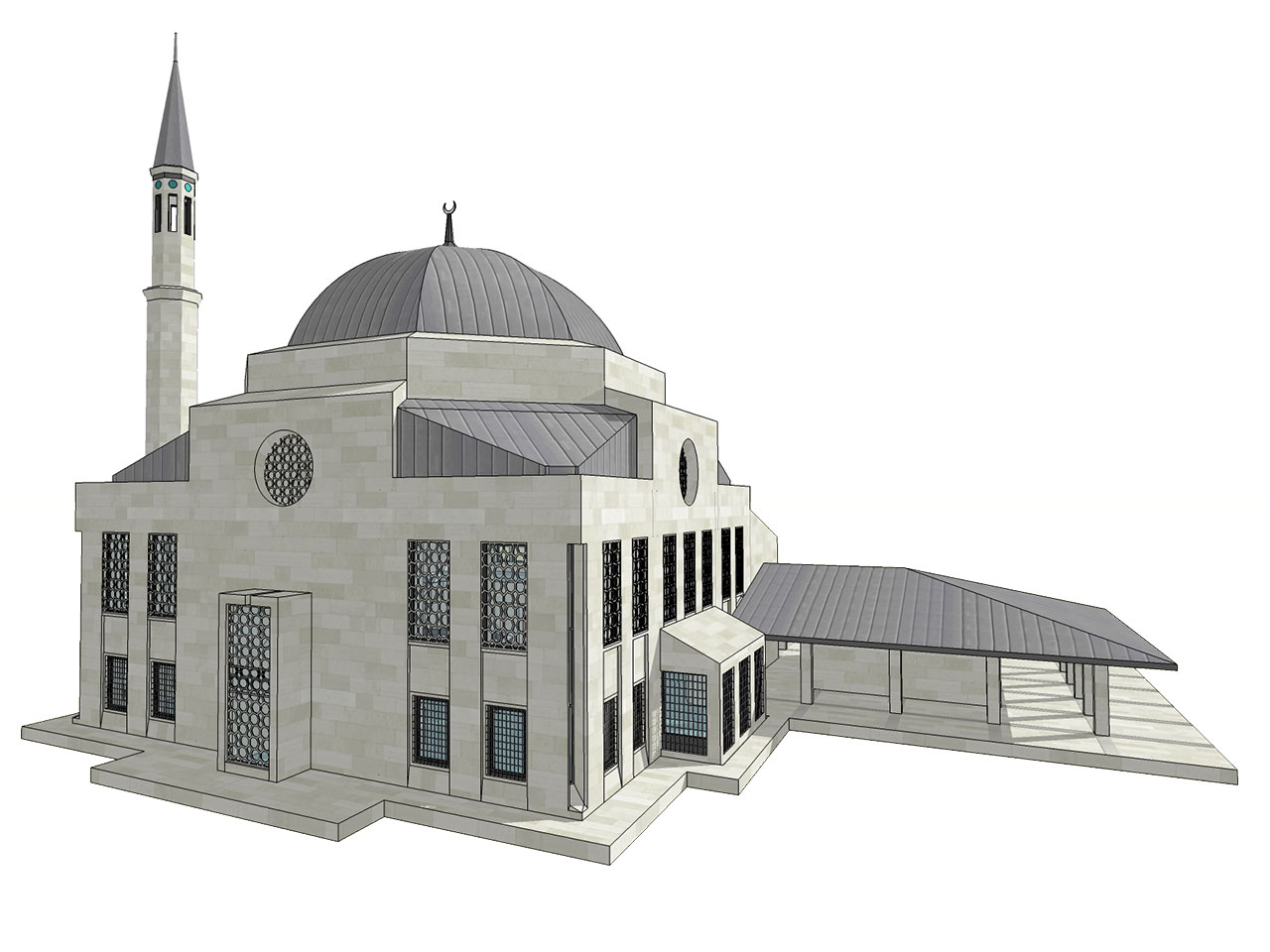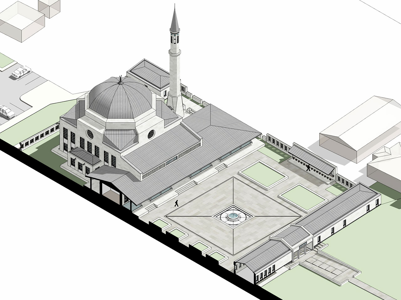 Merkezî planlı ana mekân sekizgen ayaklar üzerinde yükselir, bu ayaklar beden duvarı seviyesinden sonra içeri kıvrılarak sekizgen bir kasnak oluşturur. Bu sekizgen kasnak üzerine dilimli bir kubbe oturur. Ana yapıyı oluşturan bu sekiz kolon iç mekânda hissedilir, ancak mekânı bölmeden duvarların içinde gizlenir. Proje inşaat aşamasındadır.