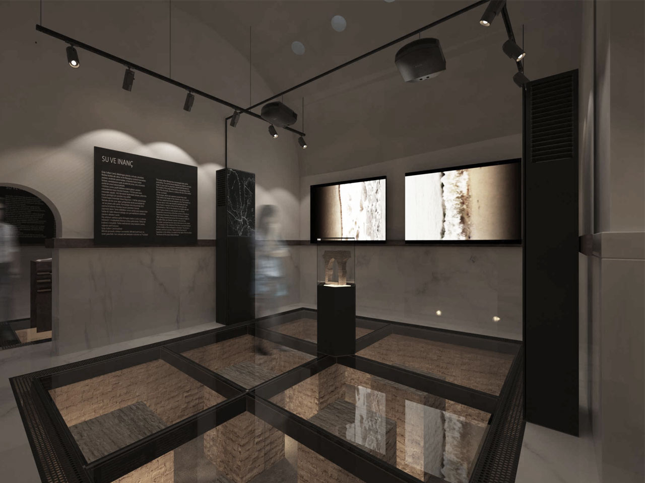 Hamamın kadınlar kısmında zamanla orijinal mermer döşemenin kaybolması sonucu açıkta kalmış olan cehennemlik ayaklarının cam döşeme ile görünürlüğü devam ettirilmiş, adeta hamam soyularak içi gösterilmiştir. Bu kısım, müzenin enformatik bölümüdür. Mermer döşeme ile hamamın görünür halinin sergilendiği, hatta nem, sis ve ışık oyunları ile desteklenerek hamam atmosferinin yaşatılacağı deneyim bölümü ise erkekler kısmıdır.